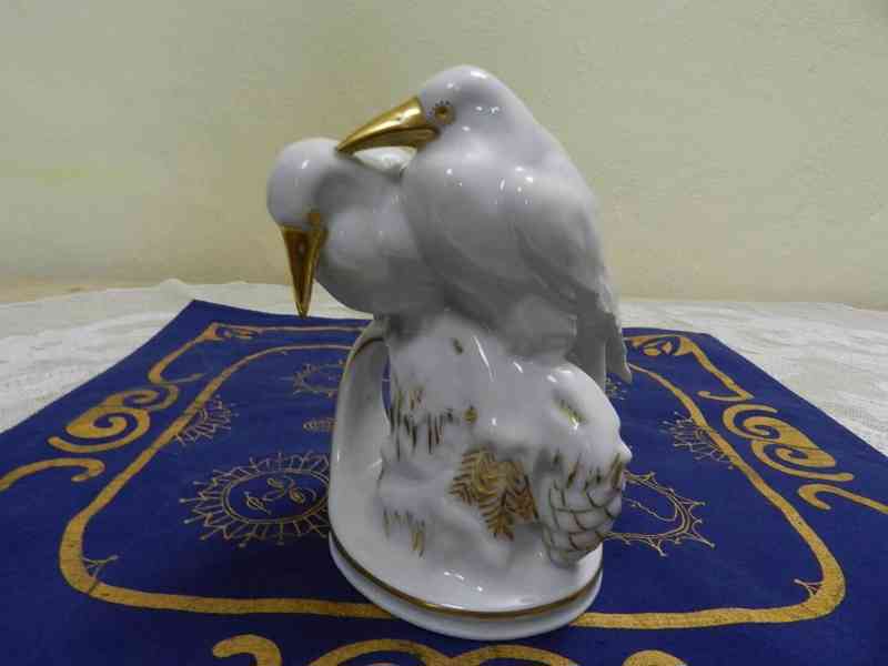 Stylová porcelánová soška Ptáci, barva bílá, zlacení - Schlackenwerth, Ostrov nad Ohří, první čtvrtina 20 stol.