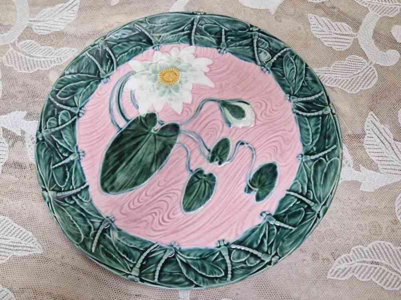 Krásný kameninový Talíř, majolika, plastický dekor, ruční malba - značeno Blansko, 19/20stol.