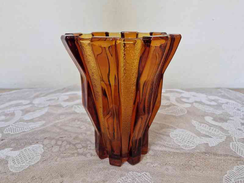 Zajímavá kubistická váza z medového skla - Rudolf Schroter Inwald ?, 1 pol. 20 stol.