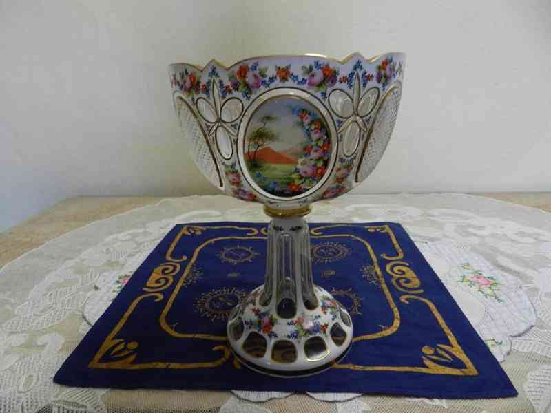 Krásný obří dortový porcelánový Tác, pestrá ruční malba, květinový dekor - Carlsbad, kolem poloviny 19 stol.