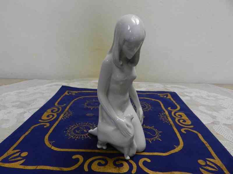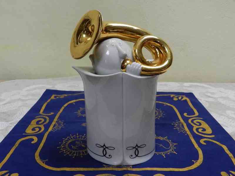 Porcelánová zlacená plastika, Trumpetista - Royal Dux Atelier, Helena Samohelová, signováno, 70 léta 20 stol.