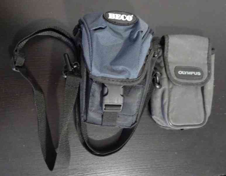 Kvalitní pouzdra/obaly/brašny OLYMPUS a BECO na běžné kompaktní fotoaparáty. Brašna BECO je zcela bez známek používání a obsahuje několik šikovných kapsiček na SD karty, baterie a další drobnosti (Cena 179 Kč). Pouzdro OLYMPUS je místy trochu ošoupané, ale jinak plně funkční (Cena 49 Kč). Cena za oba kusy dohromady 199 Kč.