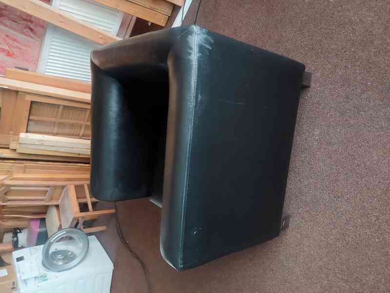 Nabízím pohodlné černé křeslo v použitém, ale slušném stavu.